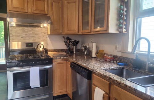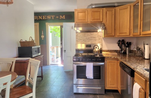 3 Bedroom house with full wet bar on the first floor, perfect for entertaining. Maritime decor includes actual ship's wheels and other artifacts. Updated in 2023 with redesigned bathroom upstairs that allows for independent use of the new shower room, toilet room and double-sink vanity. Hardwood floors throughout. Front door entry into sun porch. Sunny back deck leads to large yard with tree shade and roomy outdoor shower. Basement with washer/dryer. Great location downtown off Thames Street behind Seasons Gas and Corner Market, in between Zelda's and Vieste restaurants and new coffee house. Walking distance to the water, parks, shops and historic mansions. 2 off street parking spaces and 1 overnight street pass.