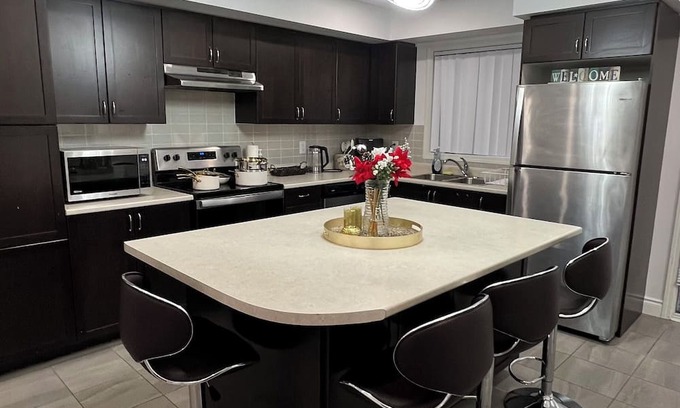 Your cozy getaway awaits in Brampton at this fabulous house. With 3 bedrooms including 1 queen bed and 2 full beds, along with 3 bathrooms equipped with a shower, bathtub, and hair dryer, this adorable property offers a comfortable stay for guests. Enjoy the convenience of amenities like an iron, AC, WiFi, and a washing machine. With a few steps, get access to Freshvo Grocery, Macdonald’s, Popeyes, banks, gas station, Beer Store, forex store and many more shops. Make your holiday one for the books with a stay at our place.