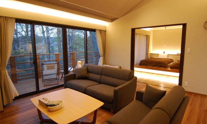 Located in an area relatively close to the entrance of the villa area The site has few ups and downs from the parking lot and you can enter the villa via a slope From the spacious wood deck with a sense of openness and good bookkeeping you can enjoy the seasonal views of the mountain range The building is a onestory building with two bedrooms The bathroom where you can take a bath while enjoying the view is 15 tsubo in size and comes with a jet bath function