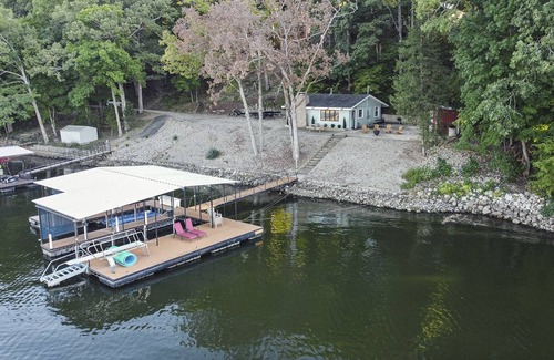 Relax with your guests at this peaceful lakefront retreat. This one level cottage features 2 bedrooms and one full bathroom, comfortably sleeping 6 people. The outdoor space is private and a true oasis! In just a few steps, enjoy the private dock and swim platform. The dock offers 1 slip for boat parking; 10x32 with 2 ride up PWC lifts! Just minutes from Captain Ron's, Fish & Co, Tavern at Trails End, The Cave, and many more favorites! Bring your fishing pole and stay a while!