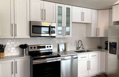 Welcome home! This unique remodel allows for a spacious retreat. Whether you are traveling for work or with your big family, it is nice to have separate bedrooms with king beds, 2 full bathrooms, 2 kitchens, and 2 living rooms. Plenty of space to gather and relax after exploring the city. Long driveway and wide street means plenty of parking and fenced yard for pups traveling with you. Just north of downtown, easy access to major highways, airport, and mountains. Nearby city lakes are fun for playgrounds, parks, and walks.