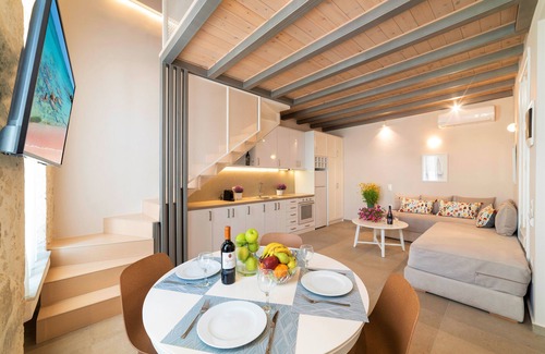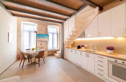 Comfortably blending elegant conveniences with modern style, the 4 two-storey Suites sit in a fully renovated old typical building in walking distance from all major attractions of Rethymnon . Whether you seek a private shelter for an adventurous getaway or a catching location for a far-out holiday in Rethymnon, our suites are guaranteed to live up to your expectations!