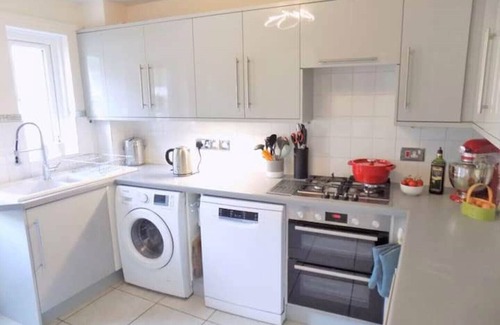 Lovely modern home hosting three double bedrooms two with king size beds and the third as twin beds. The house is laid out over two floors with the bedrooms and bathroom situated on the 1st floor. The bathroom has a separate shower enclosure. On the ground floor there is a fully equipped kitchen, oven, gas hob, extractor hood, dish washer, washing machine, separate tumble dryer and all the kitchen essentials.