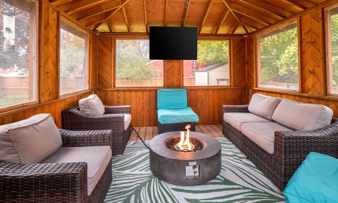 The home includes a large backyard, bbq, Fire pit, gazebo with fireplace/TV & A place for the kids to be entertained Going to a wedding -A great place to get ready, Parking for 4 in the driveway, and a short walk downtown to both venues
