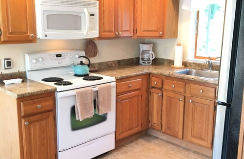 This house has the best location for beach access and water views! This lovely 2-bedroom home is just steps away from crystal clear Peter's Pond. Have a cool dip in the lake or enjoy the water views from the front deck. Unwind for some quiet time on the additional back deck. Amenities include a full eat-in kitchen, 2 bedrooms w AC units, sleeper sofa, cable/WIFI, Weber gas grill, washer/dryer laundry and 2 kayaks. All linens, bedding and towels are included. Sleeps 4-6 comfortably. On-site parking for 3 vehicles. No large groups or parties. This is a Saturday - Saturday rental in July and August.