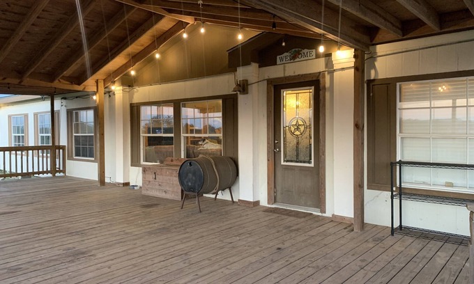 Our home sits right next to Grace Ranch and is great for a cozy getaway to the country! It boasts an extra large front porch, a great open floor plan with plenty of room to gather, 4 bedrooms, and a super fun tree house for the kids to play in. Sit on the front porch and drink your morning coffee as you take in the country views as well as getting to see the horses, cows, and goats that may pass by. Other perks are that we are less than 10 minutes to town and have some of the most beautiful sunsets!! For added fun contact Grace Ranch, at graceranch.net, and book a ranch ride. All bookings with Grace Ranch are made separately and are subject to availability. Make sure to book at least a week in advance.