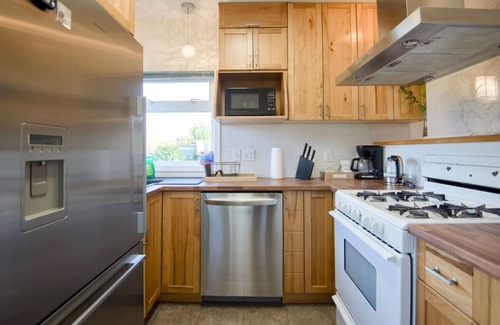 • 1 full bath, fully equipped kitchen, a cozy living space, and laundry