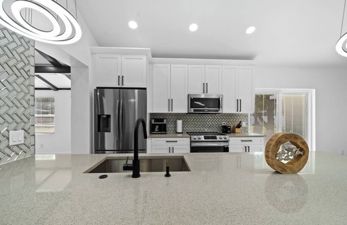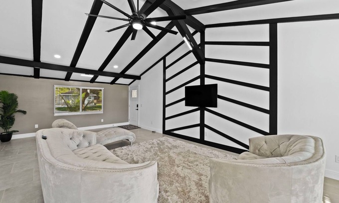 With its lush surroundings, ample amenities, and unique layout, this poolside villa is the ideal backdrop for your next big gathering. Book now and discover why so many guests fall in love with this tropical farmhouse retreat in Tampa Bay Area!