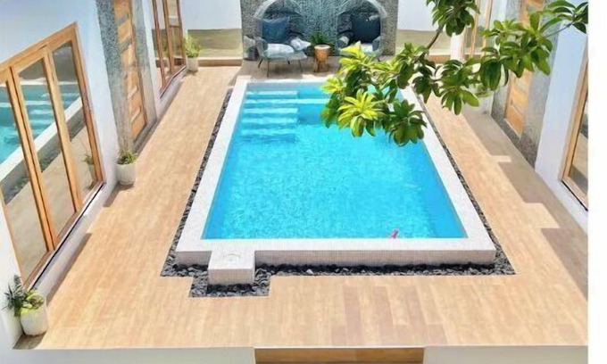 The resort consists of 4 studios. Each studio has a mini-refrigerator, water boiler, coffee machine & safe. There are two Bathrooms. Each bathroom is located in the middle and shared between the 4 studios. Studio A & B shares 1 bathroom & Studio C & D shares 1 bathroom. Each studio has its private entry. The bathroom also has a private entry.