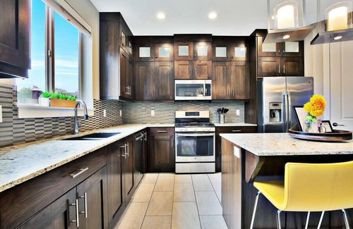While you're here, you can enjoy all the comforts of home and more, including a heated pool and a full-sized refrigerator/freezer, as well as an oven and a stovetop. Other amenities include laundry facilities, a freezer, towels, and kitchenware and utensils.