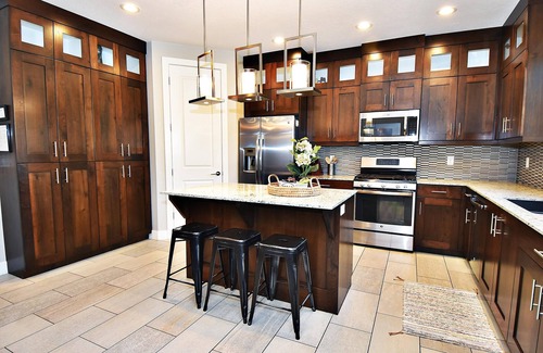 While you're here, you can enjoy all the comforts of home and more, including a full-sized refrigerator/freezer and an oven, as well as a stovetop and a dishwasher. Other amenities include towels, kitchenware and utensils, a dining area, and an ironing board.