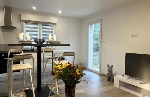 Featuring a garden, Entre mer et Montagne offers accommodations in Prades. The air-conditioned accommodation is 29 miles from Stade Gilbert Brutus. Guests can use a terrace. With free Wifi, this 1-bedroom apartment features a flat-screen TV, a washing machine, and a fully equipped kitchen with an oven and microwave. Towels and bed linen are available in the apartment. For added privacy, the accommodation features a private entrance. Marcevol Golf Course is 9.1 miles from the apartment. Perpignan - Rivesaltes Airport is 32 miles from the property.