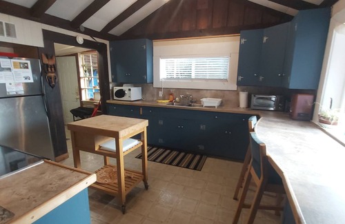 • Full kitchen with 3 fridges, stove, and Bbq. for family-style cooking and eating