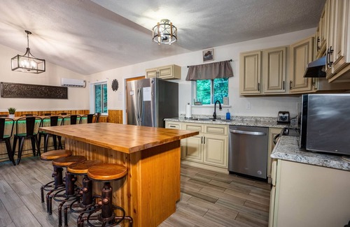 Plenty of space for everyone at this all-new farmhouse! Tucked up in the trees, this home is PERFECT for large groups. Our huge custom countertop is great for games & quality time - so is our rooftop deck & backyard! Enjoy the stellar forest views from the backyard while still being just 5 mins from the town + big name stores & restaurants, and of course the fun-filled Lake Wallenpaupack activities are under 20 mins away!