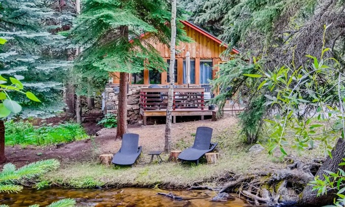 While it's minutes from historic old town Idaho Springs, Colorado, the cabin is situated in a small riverfront enclave near other tiny cabins and has a backwoods feel!