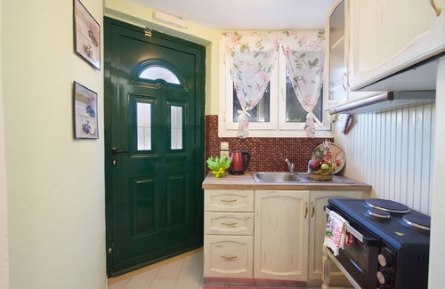 Our studio is located on the ground floor of a detached house on the outskirts of Argostoli, in a quiet area near the main square , only a short distance from the main square (about 550 m). It can accommodates up to 2 people, measuring 21 sq.m, small kitchen,private bathroom and fantastic sea view from our veranda. The central square,the pedestrian route ,supermarket,taverns,cafe are about 550 m away .Our studio is fully fitted with oven with wardrobe,aircondition unit, hob,fridge/freezer, satelite and smart tv with internet access, ,coffee maker,wifi,kitchen utensils and appliances to prepare your meals
