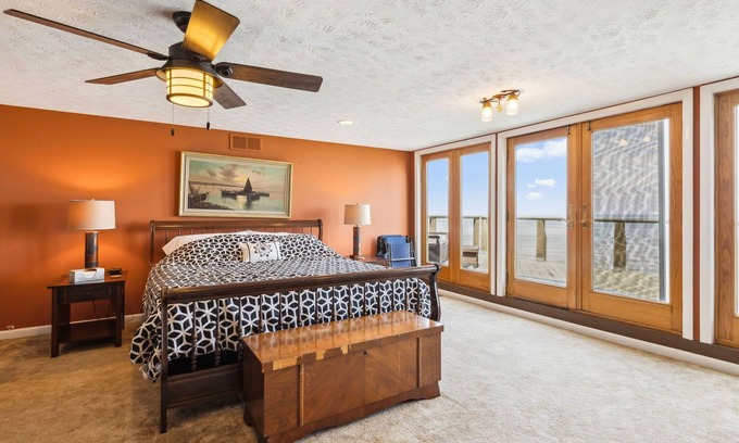 Lake Erie welcomes you to her shores and invites you to relax and revel in magnificent sunsets by the fireplace. Your idyllic lakeside retreat beckons, offering tranquility and beach access less than 2 miles from the GOTL strip. Enjoy the master suite boasting a private bathroom and deck overlooking the lake. Prepare dinner for the whole crew in the fully stocked kitchen and enjoy it on the truly massive deck with plenty of seating for all. Complete with a grill, fire place, and a lush lawn leading to the water's edge, our home invites you to unwind and embrace relaxation.