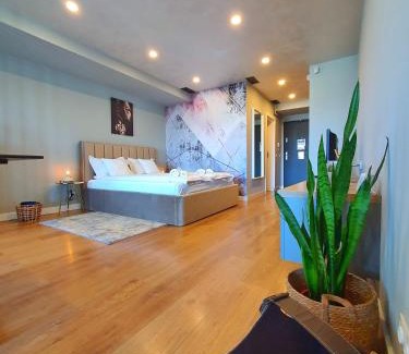 Eriss Studio Suite - OZone building apartment offers accommodations in Cluj-Napoca, 2.5 miles from Banffy Palace and 2.5 miles from Transylvanian Museum of Ethnography. The air-conditioned accommodation is 1.1 miles from EXPO Transilvania. The apartment also features free Wifi, free private parking, and facilities for disabled guests. Featuring city and inner courtyard views, this recently renovated apartment offers 1 bedroom and opens to a balcony. Offering a terrace with garden views, this apartment also features a satellite flat-screen TV, a well-equipped kitchen with an oven, a microwave, and a toaster, as well as 1 bathroom with a walk-in shower and slippers. The apartment offers bed linen, towels, and laundry service. There is a coffee shop, and a mini-market is also available. Guests can stay active with the fitness classes held in house. For guests with children, the apartment provides a baby safety gate and a children's playground. If you like to discover the area, skiing, cycling and fishing are possible in the surroundings and Eriss Studio Suite - OZone building apartment can arrange a car rental service. Cluj Arena is 3.4 miles from the accommodation, while VIVO! Cluj is 5.8 miles away. Avram Iancu Cluj International Airport is 3.1 miles from the property, and the property offers a paid airport shuttle service.