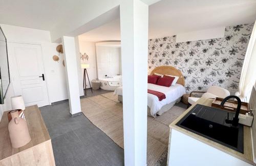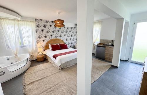 4.5 miles from Lorient Train Station in Quéven, Escale Douceur avec Spa Privé Ambiance Bohème offers accommodations with access to a hot tub. The property is around 4.5 miles from Football Club Lorient, 5.2 miles from Parc des Expositions Lorient, and 24 miles from Plouharnel Train Station. Eric Tabarly Sailing Museum is 6.4 miles from the apartment. The apartment consists of 1 bedroom, a fully equipped kitchen with dining area, and 1 bathroom with hot tub. A TV is offered. For added privacy, the accommodation features a private entrance. Val Quéven Golf Course is 1.2 miles from the apartment, while Pont-Scorff Zoo is 1.8 miles from the property. Lorient South Brittany Airport is 2.5 miles away.