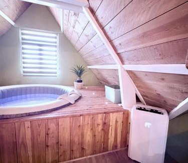 Food & DrinkBottle of water, Tea/Coffee makerBathroomHairdryer, Toilet, Private bathroom, Bathrobe, Bathtub or shower, Shampoo, Toilet paper, Free toiletries, Towels, Body soap, ShowerMedia & TechnologyFlat-screen TV, Streaming service (like Netflix), TVGeneralSmoke Alarm, Hardwood or parquet floors, Fan, Air conditioning, Private entrance, Soundproof, Trash cans, Heating, Fire extinguisherActivitiesHot tubKitchenKitchenette, Electric kettle, Refrigerator, Microwave, High chair, Coffee machine, Wine glasses, KitchenwareOutdoorsBalconyLiving AreaDining areaBedroomChildrens' cribs, Wardrobe or closet, LinensAccessibilityUpper floors accessible by stairs onlyRoom AmenitiesSocket near the bed, Clothes rack |