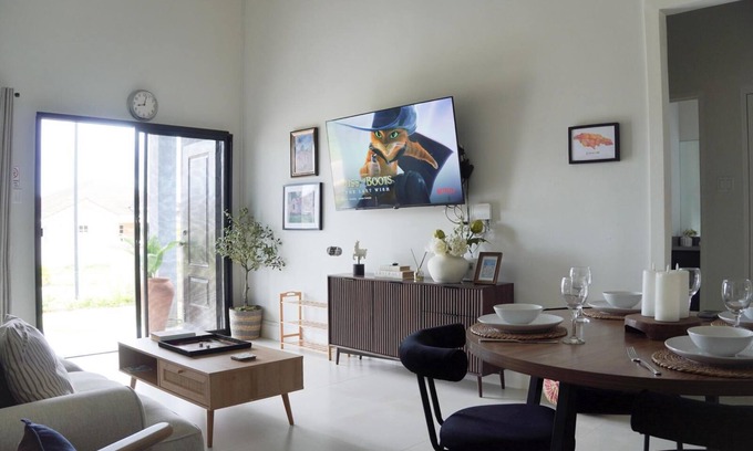 Your private 3-bedroom villa retreat with modern comforts nestled in a quiet gated community with lush greenery.