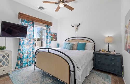 Our home offers a seamless blend of modern elegance and Southwest charm, providing the ultimate comfort. Unwind in front of the fireplace, watch a movie on the large flat-screen TV, or simply indulge in conversation while enjoying the panoramic views of the surrounding desert landscape.