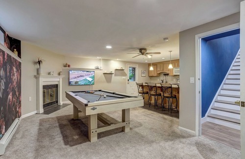 Indulge in relaxation and entertainment with two massive 75-inch 4K TVs, an arcade room, and a master suite showcasing a lavish 3-head shower—complete with a rejuvenating rain shower head. With four living rooms and ample seating for 17 guests in the kitchen and dining area, there's plenty of space for everyone to unwind and socialize.