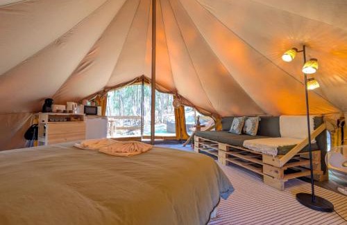 Offering a garden, Eucalibrios-Tenda Alecrim offers accommodations in Reguengo Grande. This property offers access to a terrace and free private parking. On clear days, guests can head outside to enjoy the luxury tent's outdoor fireplace or simply kick back and relax. Towels and bed linen are featured in the luxury tent. For added privacy, the accommodation features a private entrance. Obidos Castle is 8.6 miles from the luxury tent, while Baleal is 10 miles away. Humberto Delgado Airport is 46 miles from the property.