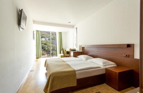 Set on a hill overlooking the 2-km long Becici Beach, the Eurostars Queen of Montenegro is 2.5 mi away from Budva. It features a gym, spa area and two swimming pools. Guests can sample Mediterranean and international specialties at the elegant lobby lounge, poolside restaurant, taste various buffet dishes in the main show kitchen restaurant. Featuring a panoramic terrace with view of the Adriatic Sea, the lobby bar serves a wide range of alcoholic and nonalcoholic drinks as well as snacks. The outdoor swimming pool is located on a spacious terrace, boasting with stunning sea views. All rooms come with hardwood floors, flat-screen cable TV and air conditioning. Free wired internet is provided. The bathrooms have showers, toiletries and a hairdryer.