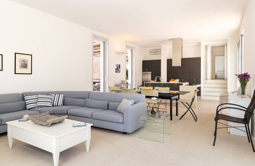 An elegant veranda (75 sqm), partly shaded, is furnished with outdoor sitting areas and embellished with a garden rich in flowers and Mediterranean plants, which surrounds the whole house.