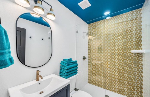 Uptown Peach is located in the heart of Uptown Waco. 2 EV Charge Stations on property. We offer 4 sweet suites surrounding a courtyard designed for gathering around 2 fire pits, 2 outdoor dining tables or hanging out in the swings. You can rent one or all four of the suites for a private celebration. Easily walk to coffee shops, wine shops, restaurants, art stores or down to Cameron Park for a day of hiking or biking. Magnolia Silos are 1.6 miles away and 3 miles to Baylor University. Cook away in the fully stocked kitchen. Enjoy a hot cup of Nespresso or Keurig coffee on your own front porch. Watch your favorite game or movie with the outdoor projector. Take the bikes for a ride downtown. You will be close to everything you want to do in Waco, TX!