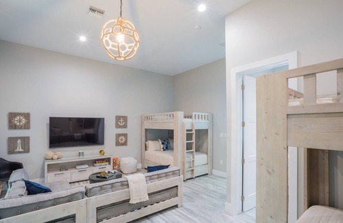 Inhale, exhale and arrive at Evolution, a seven-bedroom, seven and a half bath villa on a wide stretch of natural beach in Bodden Town. Return to simple luxury in a coastal-chic interior where every window offers sweeping views of the crystal blue sea —including those in each of the seven oceanfront bedrooms. Choose from two king-size master suites, four queen-size suites and an LCV signature bunk room (sleepover!) that sleeps 8 with two full-over-full bunks and a lounge/gaming area. Free Wifi.