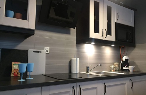 Living room & kitchen (open space): TV, sofa easy transfer in the double bed and coffee table, Wi-Fi internet access, basic kitchen equipment, microwave, coffee machine, heating plate, refrigerator and electric kettle, table and chairs.