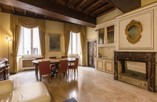 Located in the most exclusive district of Rome, a few steps from the majestic Piazza Navona, the apartment consists of: