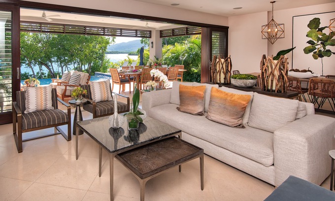 Spacious open plan Living Room that opens out to the patio and pool deck