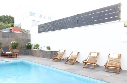 There are 3 bedrooms with access to the outdoor terrace and pool, two bathrooms with shower, a spacious living room, a dining room with fully equipped kitchen. Outside there is a saltwater pool with sun loungers and a grill station with dining area. A guarded parking for your car is also available.