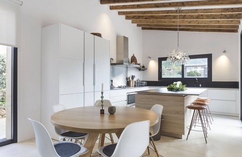 The house has been recently renovad with lots of attention to details and design to a perfect 4 bedroom (2 double with en-suite bathrooms and 2 single with Queen size bed) and 3 bathroom home with 5.000sq.m parcel with fruit trees and garden, well equipped large kitchen, several terraces, fabulous outdoor lounge and dinning areas, and a lovely pool area with outdoor kitchen, toilette and shower.