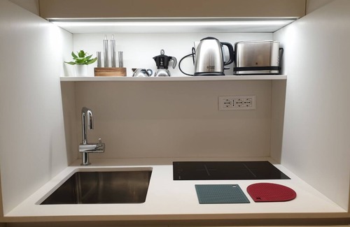 A living room, a sofa bed, air conditioning, and a desk are featured at this 1-bedroom, 1-bathroom rental. Enjoy the free WiFi and TV. Bathroom amenities include a hair dryer, a bidet, and towels. The kitchen is equipped with an oven, a stovetop, and a refrigerator, as well as a coffee maker, an electric kettle, and a microwave. And you won't have to pack extra clothes, because you'll have a washer and dryer, too. Other amenities include bed sheets, an ironing board, heating, and a dining table.