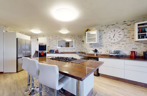 We have recently refurbished the villa and now have a new fully-fitted and equipped modern kitchen. To cater for large groups we have 2x ovens, 2x dishwashers, large fridge and freezers, wine fridge, large gas hob built in the central island. There is a blender, mixers and a Nespresso coffee machine in the villa.