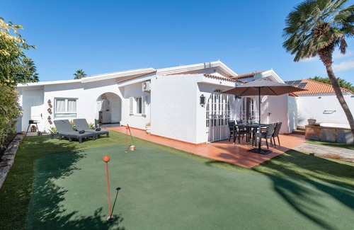 Exclusive Vacation Villa in Maspalomas with Heated Pool with Bubbles is located in Campo Internacional Maspalomas. Exclusive Vacation Villa in Maspalomas with Heated Pool with Bubbles provides accommodation, featuring Barbecue/Outdoor Cooking, Laundry, Balcony/Terrace, among other amenities. This House features Barbecue/Outdoor Cooking, Laundry, Balcony/Terrace, to make your stay a comfortable one.