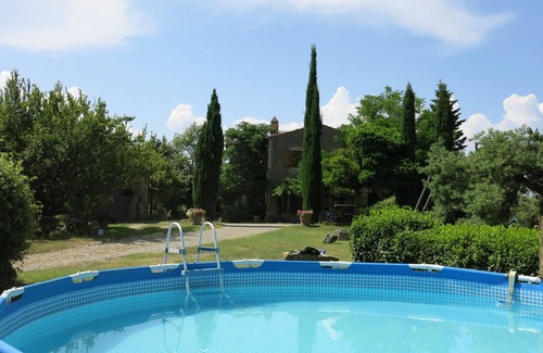 The country house “Pomantello” from the 17th Century is picturesquely situated on a hill and offers a unique panoramic view of the fields, the adjacent natural park Monte Rufeno and the medieval village of Torre Alfina.