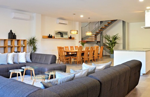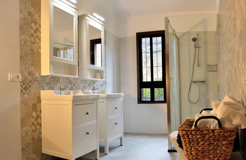 Enjoy the luxury of 6 bright bedrooms for up to 12 people. Each room includes a queen-size bed, air conditioning, heating, TV, and a wardrobe with 3 additional sofa beds available upon request. There are fully equipped kitchen. The living room joins together with the kitchen to create an open-concept space ideal for socializing. There are also four bathrooms with luxurious showers and amenities. In addition, it has three outdoor terraces and a heated pool.