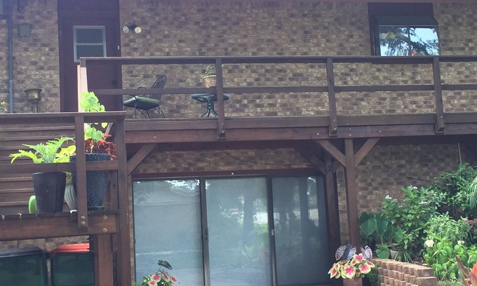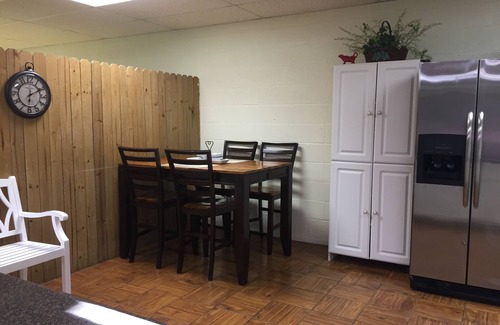 Open Concept Apartment, 1,000 sq ft. Totally private. Private entry and parking. Located on lower story of my home. Queen size bed, Bathroom with shower, full kitchen with long bar /island, Living area with decorative fireplace, two closets & two chests; lots of storage, leather-like sofa & love seat, occasional chair with ottoman. Fabric recliner. 50" LG tv. Suddenlink cable tv and Wi-fi. Internet always available. Office space armoire with desk. Washer and dryer in unit. Central heat and A/C. Fully furnished and equipped. Nicely decorated. The apartment is clean, quiet and cool. The neighborhood is established and quiet.