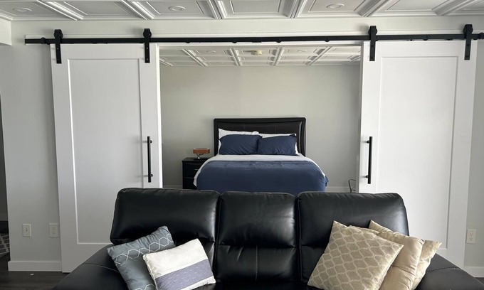 Welcome to our stylish executive walkout basement suite! This beautifully designed space is perfect for business travelers, couples, or solo travelers seeking comfort and convenience.