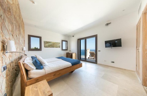 BathroomShower, Bath, Hairdryer, Toilet, Bath or shower, Additional toilet, Towels, Toilet paperMedia & TechnologyTV, Radio, Satellite channels, Flat-screen TVGeneralAir conditioning, Iron, Ironing facilities, Heating, Private entrance, Tile/marble floor, Trash cansKitchenKitchenette, Refrigerator, Microwave, Dishwasher, Washing machine, Kitchen, Electric kettle, Kitchenware, Oven, Stovetop, Coffee machine, Dining tableOutdoorsBalcony, Patio, Private pool, Barbecue, Terrace, Outdoor furniture, Outdoor dining areaLiving AreaSeating Area, Sofa, Dining areaViewView, Sea view, Garden view, Pool viewActivitiesSaunaBedroomWardrobe or closet, Linen, CribsBuilding characteristicsDetachedPool and wellnessInfinity pool, Pool with a view, Pool coverRoom AmenitiesSocket near the bed |