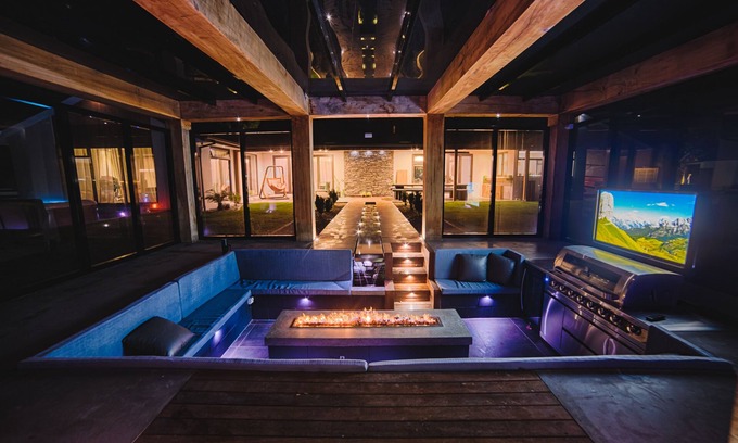 Enjoy the hot spa, watch TV while relaxing in the fire-pit, cook dinner on your own teppanyaki table.
