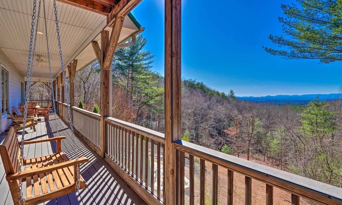 Sweeping mountain views and forested surroundings welcome you to this beautiful 2-bedroom, 2.5-bathroom vacation rental in Murphy! The home boasts open spaces flooded with natural light, at-home essentials, and additional sleeping space in the game room and loft. Start your day with a cup of coffee while admiring the views from the deck then strap on your boots and go for a hike through the picturesque Smoky Mountains. Later, treat yourself to dinner and drinks in downtown Murphy or Hayesville.