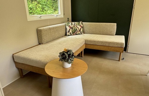 The spacious Clervaux mobile home offers everything needed for a luxury family holiday. With 4 bedrooms and room for 8 guests, everyone enjoys privacy and comfort. This modern mobile home has a well-equipped kitchen and two bathrooms for convenience. The open-plan kitchen and living area with double doors lead directly to a cozy wooden terrace, blending indoor and outdoor living. Pets are welcome!