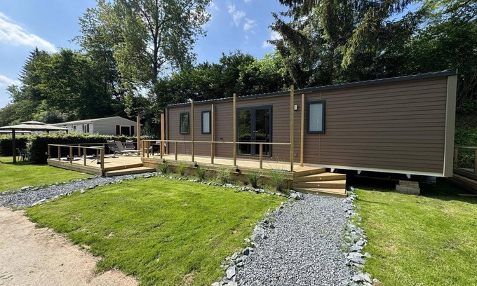 Experience luxury in Clervaux mobile home at Resort Walsdorf, 8 guests, 2 bathrooms, terrace, nature nearby. | House in Tandel