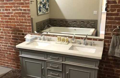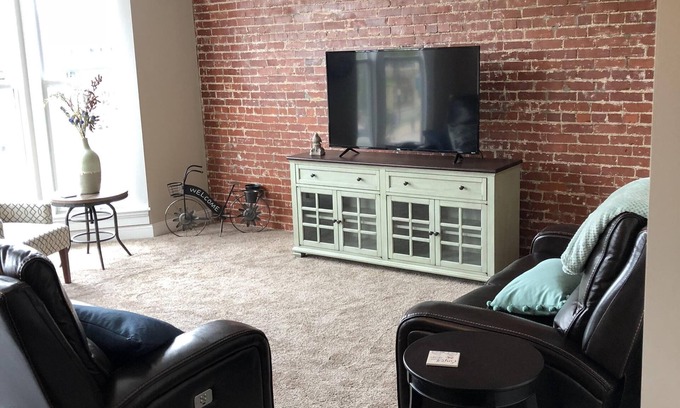 This is the largest and the finest of the the Experience the Lofts properties. Newly built in 2018 this property has 3 bay windows overlooking the historic Iola square. There was no expense spared with the furnishings or decor of this unit. Once again the luxury of a fine kitchen with granite countertops. Bathroom has a whirlpool bath as well as a walk in shower. The bedrooms have king beds with televisions mounted on the walls. This unit has a large living /dining area with a 55 inch television.